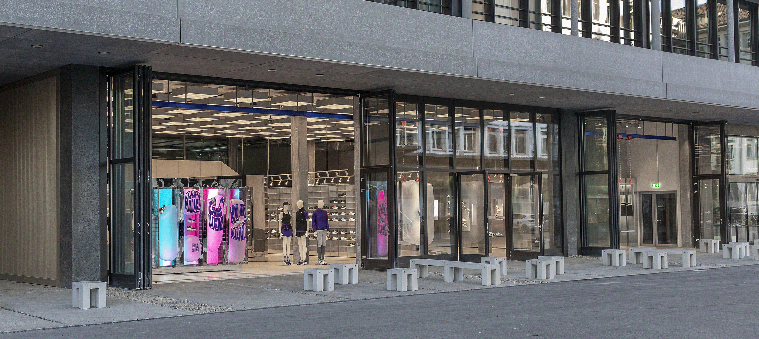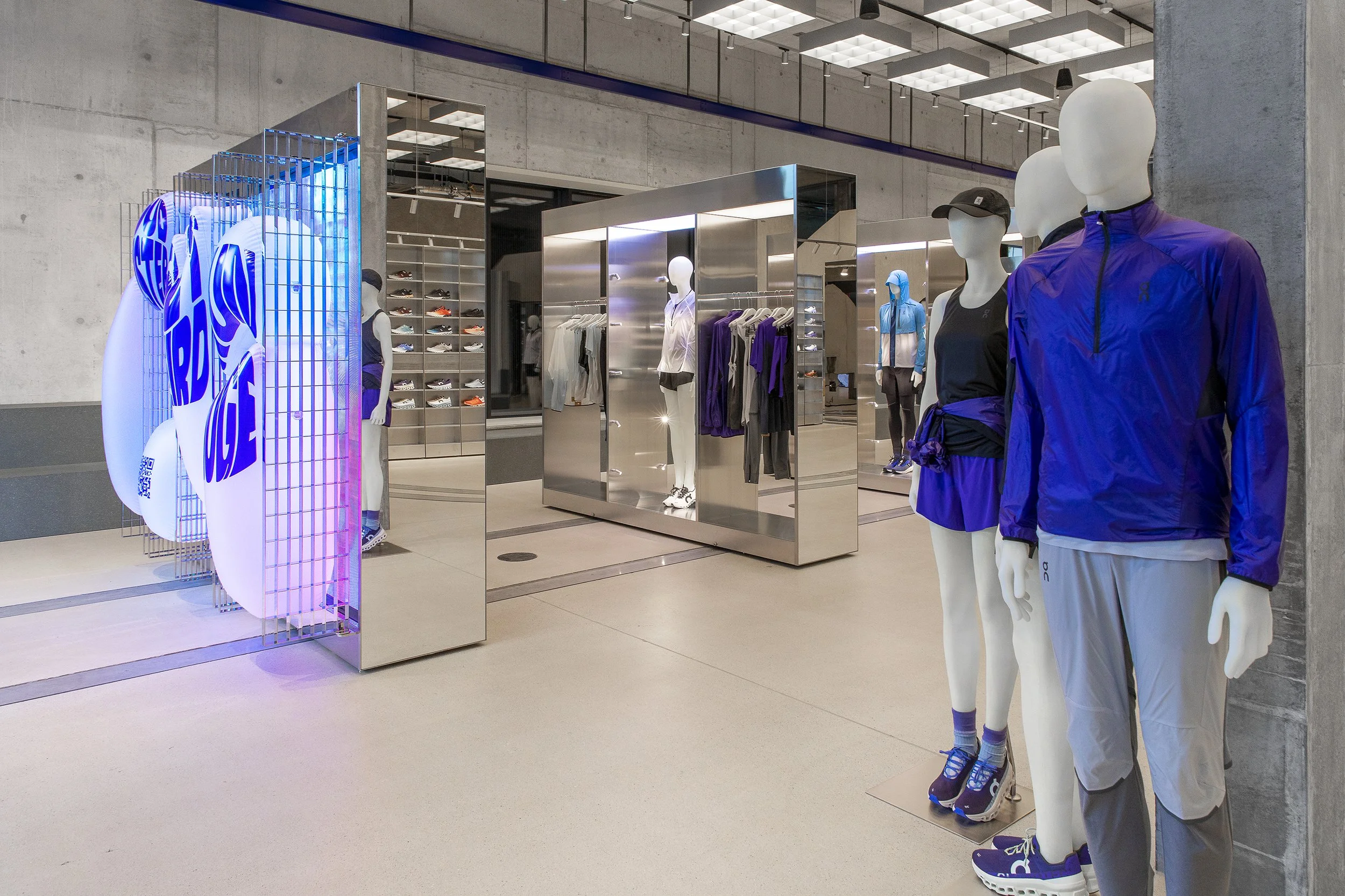 On Cloud Monster campaign installation Zürich flagship store opening 22. Design, Engineering and Development of inflatable installation that would communicate the maximized cushioning and weirdness of the brand new Cloud Monster shoe. Large inflatables in deformed shapes with bold graphics were used to communicate the cushioning and deformation of the Cloud Monster sole elements whilst running. A frosted material was used in combination with LED lights to allow the volumes to come to life and stand out in the retail space.